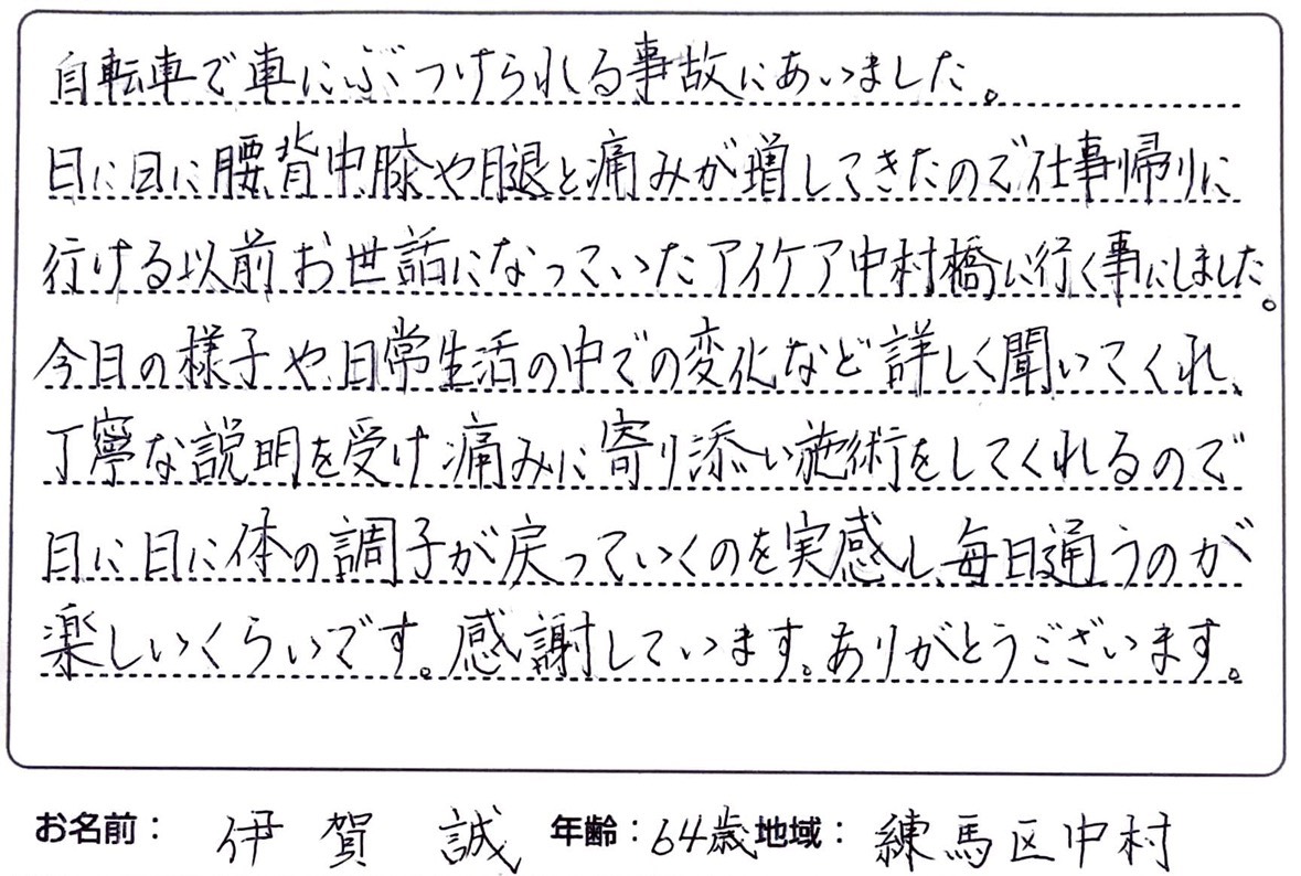 事故 膝痛 伊賀誠様 64歳 男性 練馬区中村